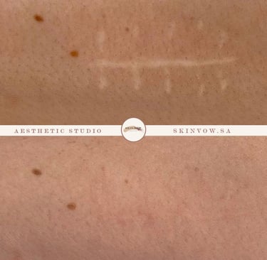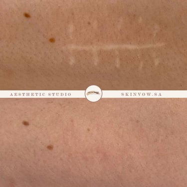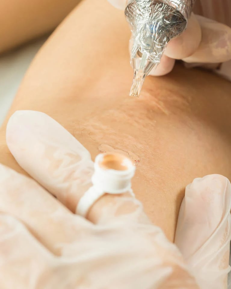 In addition to stretch marks, we also work with multiple types of scars, such as surgical scars, vitiligo, and others. This semi-medical tattoo treatment for scars and stretch marks can be applied to most scar tissue. It is long-lasting, provides fast, noticeable results after a single session, and has a rapid healing process.
